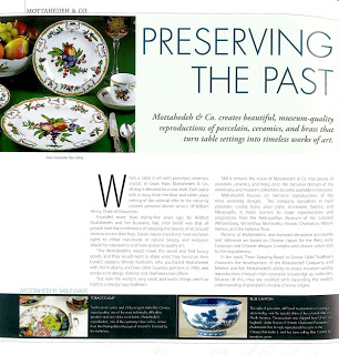 Still it remains the vision of Mottahedeh & Co. that pieces of porcelain, ceramics, and brass, once the exclusive domain of the artistocracy, and museum collections become available to everyone.
