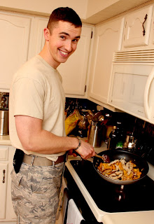 "If he can cook or prepare that day's meal; preferably dinner, but lunch can work too. If not, then a well chosen store-bought pretty looking pastry for dessert. (elegance is key!)