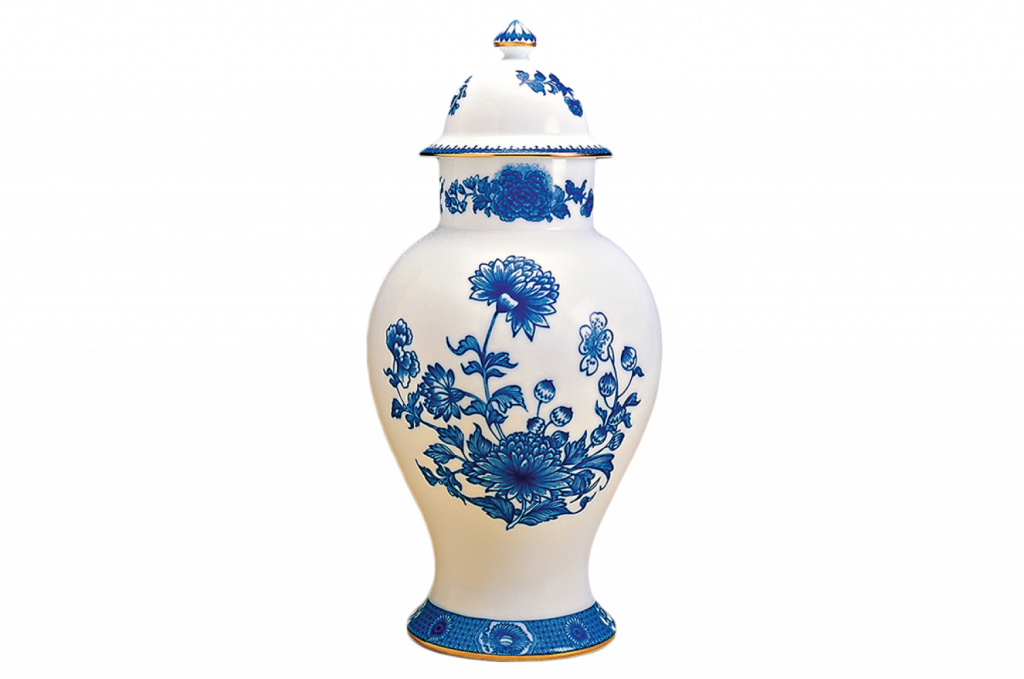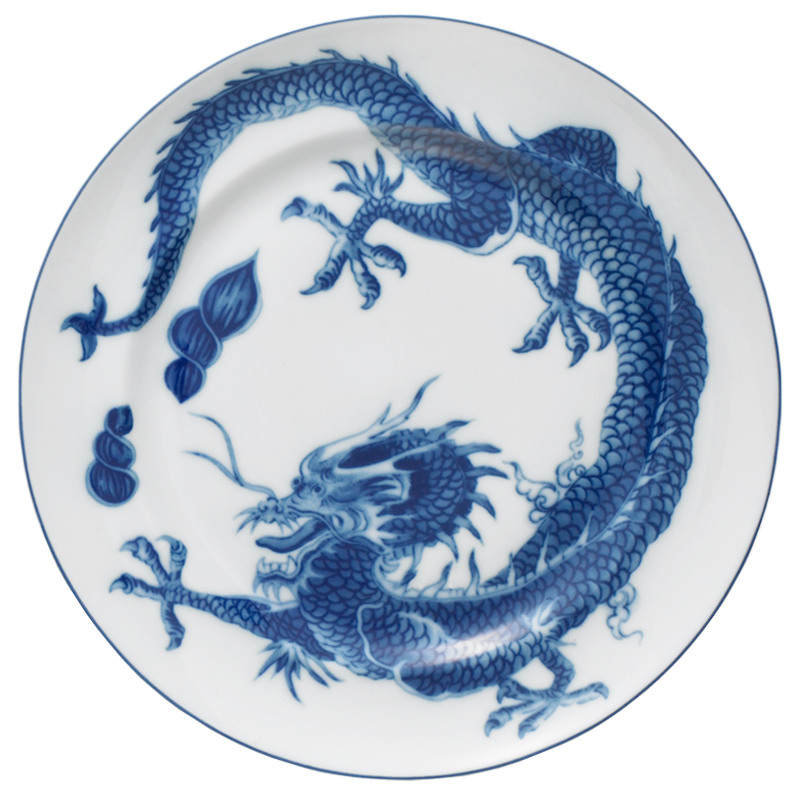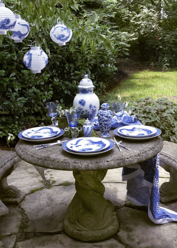 As Mrs. Mottahedeh used to quote an old Chinese saying, ' The height of good taste is the simple appreciation of blue and white. Shown here is our Blue Dragon Dinner Plates with our Indigo Wave Service Plates below, and Imperial Blue Ginger Jar in the center.