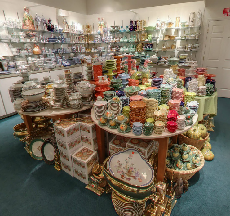 The room in the back of the showroom is our "Seconds Room". Twice a year we have a "Mottahedeh Madness Sale" where we sell products at a reduced price. Certain items are made specifically for the "Mottahedeh Madness Sale" and others are what we call "seconds" or products that might have a small flaw, but are still considered high quality enough to be sold at a discounted price. The sale is by "Invitation Only" but it's still pretty neat to see what's back there.