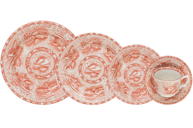 But it’s their intricate shell pattern, known as Torquay, that really adds a summery vibe. The design was named after an English coastal resort town in Devon and is a reproduction of a style created around 1820. “The pattern was originally produced in navy blue and then sea green,” said Mottahedeh’s president, Wendy Kvalheim. Other shades, such as the coral of Ms. Hicks’s set (a 40th-birthday present from Mr. Wood), came later but the design has remained the same: What looks like an ordinary flower-and-flourish pattern from afar is actually a lighthearted rendering of a nautilus and cowrie shell.