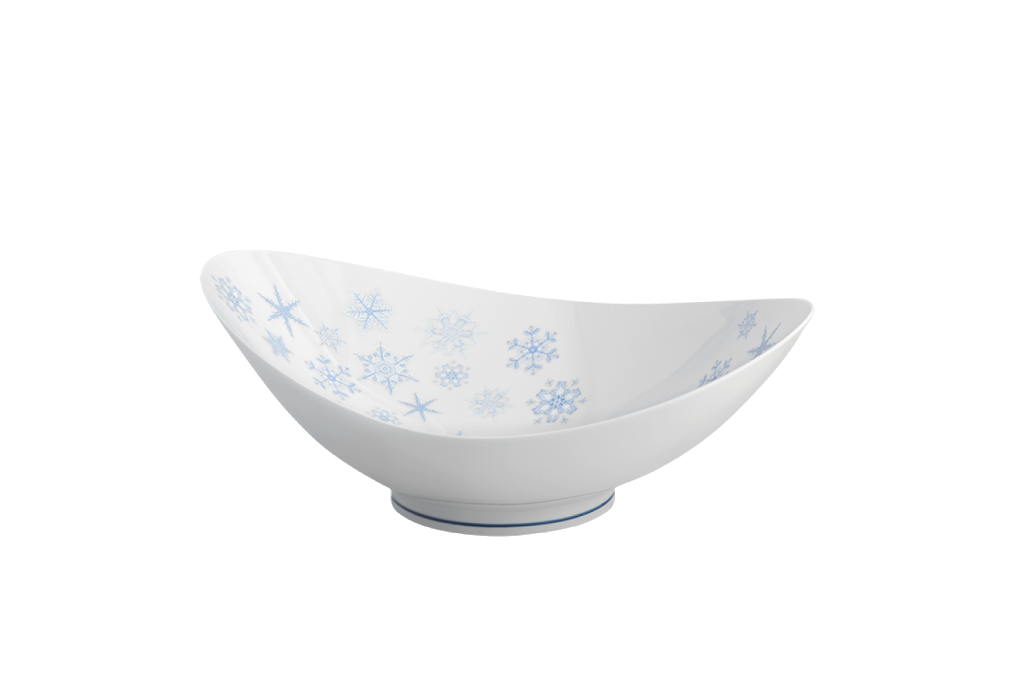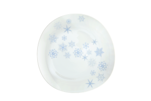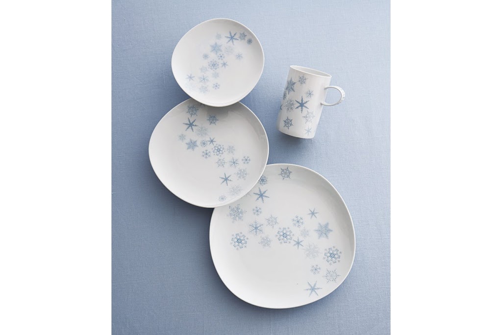 Imagine a candlelight dinner, a holiday gathering or an after snowman outing with a hot cup of cocoa. National Geographic's photo archive is the inspiration for this delicate design. Each actual snowflake was originally hand painted in icy tones of blue and silver.