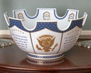 Many of these items are available at our online store. Same in quality and design, they remain timeless and adjustable to every interior. We are very proud to have Mottahedeh inaugural gifts and dinnerware manufactured. Not only that these pieces represent the symbols of the United States, but they are also part of the U.S. history and, thus, their value is much higher.