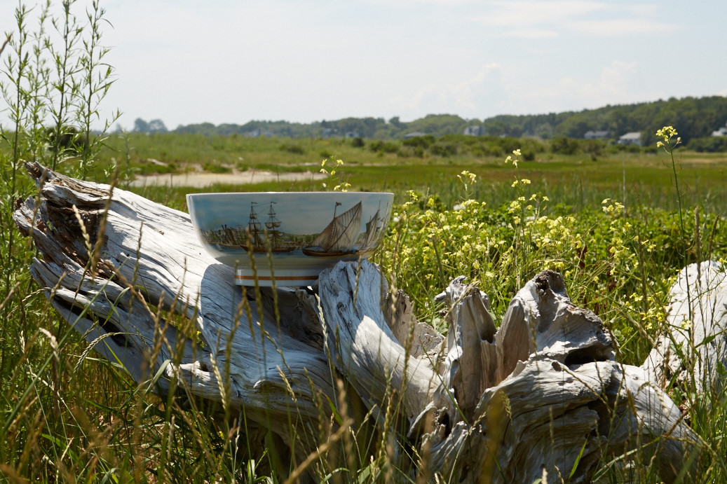 The nautical scenes depicted on this punch bowl are interpretations of a DeRoy lithograph after a drawing by A.J. Milbert in the early 1800’s. The artist has portrayed “Boston Circa 1800, the Birthplace of American Commerce”. This bowl is available only through Shreve Crump and Low of Boston and represents the best of Boston history. (Mottahedeh item #2164)